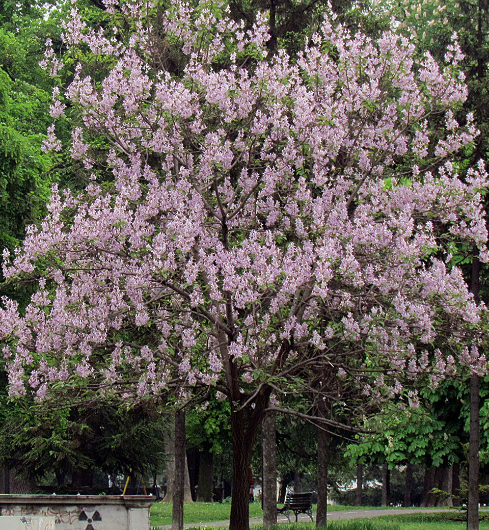 오동나무는 보라색 꽃이 아름다우며 꽃향기가 은은할 뿐만 아니라 공기 중 이산화탄소와 먼지 입자를 다량 흡수하는 능력과 넓은 잎은 한여름의 햇볕 가리개가 됩니다. 그래서 프랑스의 파리나 중국의 베이징 등에서는 도심의 가로수로 오동나무를 많이 식재하였습니다. 오동나무 꽃은 개화기가 30일 이상으로 장기간입니다. 오동나무를 대량 조림하게 되면 자동적으로 관광자원이 될 뿐만 아니라 양봉을 위한 밀원이 형성됩니다.